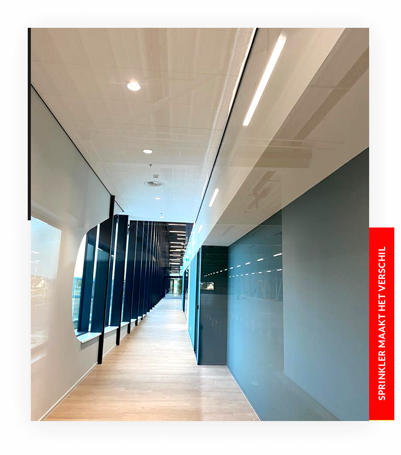 Voor Amrath Galaxy Jaarbeurshotel werken we met verborgen sprinklersysteem. Een verborgen sprinklersysteem wordt geplaatst tussen de bewapening op de bekistingsplaat, tussen de houten draagstructuur of in de isolatielaag van een constructie.